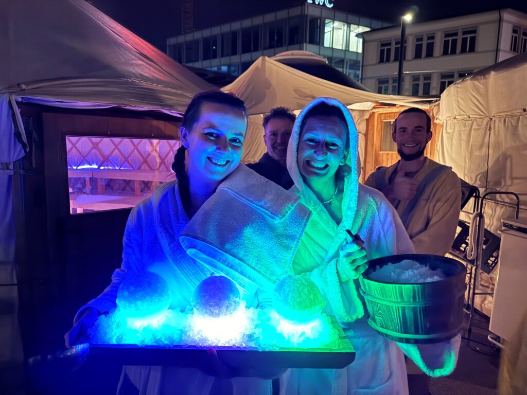 Besonders stolz sind wir auf unsere kreativen und experimentierfreudigen Aufgiesserinnen und Aufgiesser. Mit Herzblut und Fantasie gestalten sie jede Zeremonie neu – immer mit dem Ziel, dir ein unvergleichliches Saunaerlebnis zu schenken. Alle unsere Freiwilligen sind fachmännisch geschult und verstehen es, mit Leidenschaft, Sicherheit und Gespür die perfekte Balance zwischen Hitze, Duft und Gefühl zu schaffen.